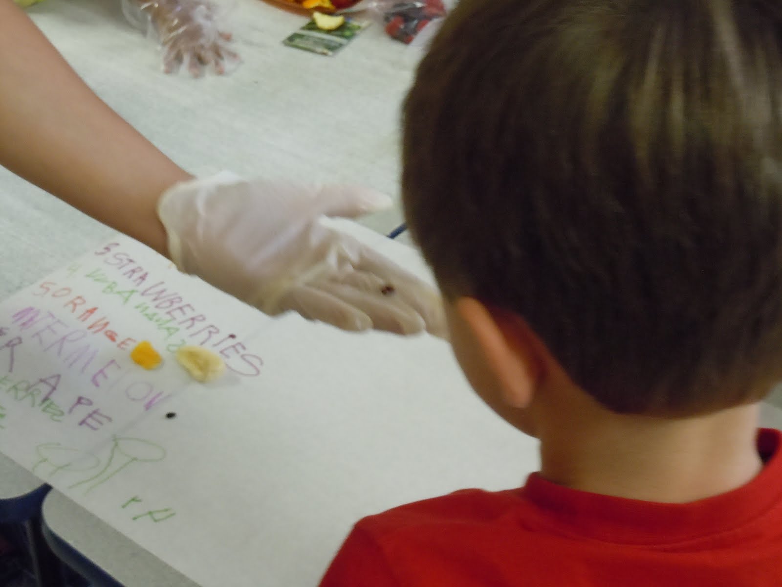 We cut each fruit to look and see what the seeds looked like and the size of it. We discussed how their were some seeds that we can eat because they were sooo tiny we couldn't see them.